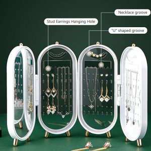 - 【Folding Design & Dust-proof】The foldable screen design can greatly save space. Ornaments are not easy to entangle during display and storage, and friction can also be avoided. When you are not showing jewelry, you can fold the jewelry box for jewelry storage. Closing the jewelry box can isolate the air, delay the aging of the jewelry, and prevent the accumulation of dust.